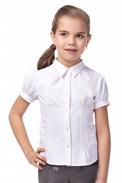 Блузка приталенного силуэта. Под горловиной небольшая кокетка. Рукав-фонарик.