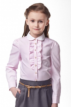 Блузка из фактурной ткани с небольшим жабо. Защипы по окату рукава. Застежка на декоративные пуговицы.