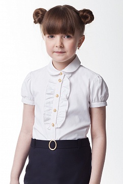 Блузка из фактурной ткани с небольшим жабо. Рукав-фонарик. Застежка на декоративные пуговицы.