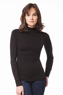 Базовый плотно прилегающий джемпер, сшитый из эластичной трикотажной вискозы, с невысоким воротником-стойкой.