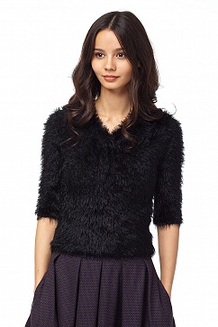 Джемпер выполнен из пряжи с эффектом меха. Очень мягкий и пластичный, отлично тянется и приятен к телу. Длина до талии, рукав 3\4