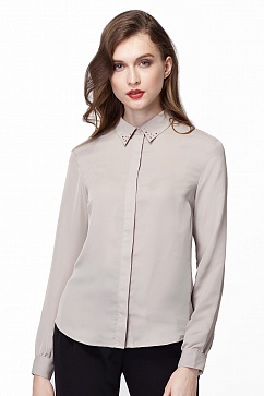 Блузка из тонкого синтетического шелка. Классический покрой, потайная застежка на планку. Воротник декорирован стразами SWAROWSKY в цвет ткани.