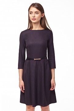 Классическое платье-миди из мягкой костюмной ткани с геометрическим узором. Элегантный приталенный силуэт с отрезной юбкой-трапецией с глубокими складками. Рукав 3\4, сзади глубокий V-образный вырез с застежкой на потайную молнию в заднем шве. Ремешок в комплект не входит.