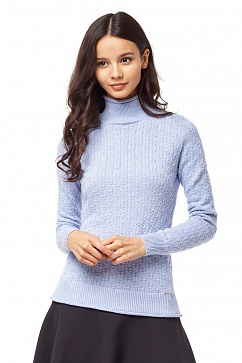 Свитер узорной вязки из теплой и пушистой пряжи. Ворот-стойка, манжеты, и низ свитера связаны резинкой.