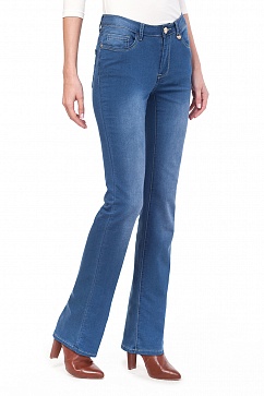 Джинсы-клеш. Выполнены из очень эластичного денима. Заниженная талия, плотная посадка по верхней части ноги, клеш от колена.