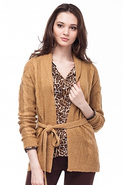 Легкий и теплый жакет с поясом из мягкой и теплой пряжи с добавлением мохера. Вязка косами. Отложной воротник - шаль.