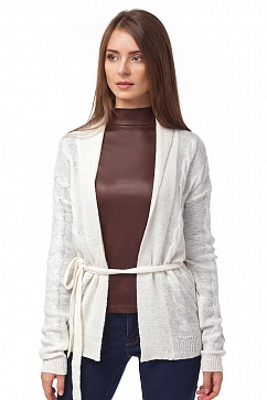 Легкий и теплый жакет с поясом из мягкой и теплой пряжи с добавлением мохера. Вязка косами. Отложной воротник - шаль.