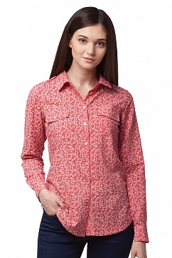 Блузка рубашечного кроя из вискозного штапельного полотна с мелким контрастным узором. Отложной воротник на стойке, застежка на пату с перламутровыми пуговицами. На груди накладные карманы с клапаном. Для покупателей детской одежды будет интересно приобрести платье для девочки из аналогичного материала F22.147. Популярный family-look!