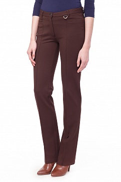 Деловые прямые брюки со средней посадкой выполнены из плотного джерси, с отстроченными стрелками и карманами. Перед и карман сзади декорированы фурнитурой.