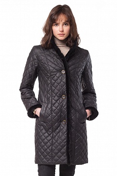 Стеганое пальто полуприлегающего силуэта, на тонком синтепоне, край воротника-стойки и борта оторочен качественным искусственным мехом, имитирующим мех норки.
