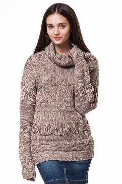 Удлиненный свитер из толстой мягкой пряжи с добавлением шерсти. Объемный воротник "хомут". Крупная трехцветная вязка-меланж косами.