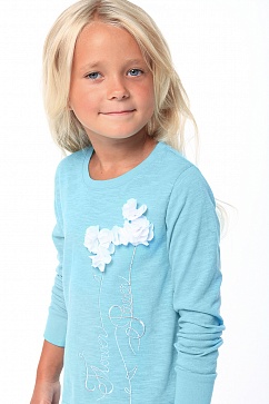Джемпер из футера с вышивкой и контрастной аппликацией в виде цветов. Низ изделия декорирован кружевом.