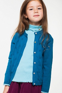 Вязанный жакет из тонкой хлопковой пряжи. Перед ажурной вязки. Застежка на пуговицы из натурального перламутра.