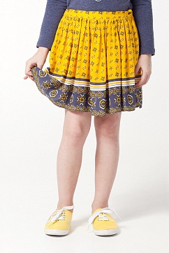 Юбка из тонкой вискозной ткани с принтом. Сзади пояс собирается на резинку. В левом боковом шве застежка на молнию и пуговицу.