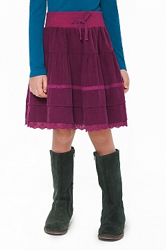 Юбка из тонкого вельвета, декорированная хлопковым кружевом.