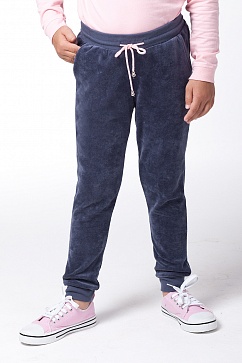 Брюки из хлопкового велюра с рибаной и шнурком на поясе, с удобными боковыми карманами. По низу брюк рибана.