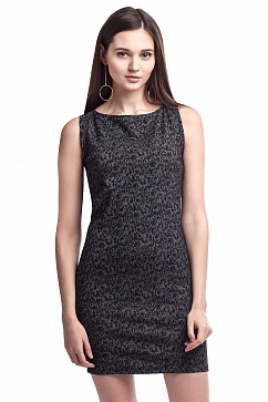 Платье из эластичного джерси с жаккардовым рисунком. Изделие облегающего силуэта с вырезом-лодочкой. В больших размерах длина платья за колено.