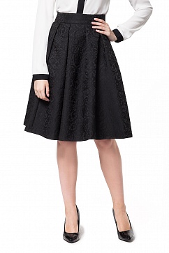 Юбка с глубокими складками из жаккардовой ткани с эффектом кружева. Высокая посадка на талии, застежка на молнию с цельнокроеным подзором, карманы в боковых швах.