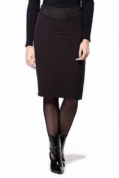 Юбка-карандаш из плотной классической ткани на подкладке. Сзади застежка на молнию. Пояс оформлен в виде кокетки из декоративной жаккардовой ткани.