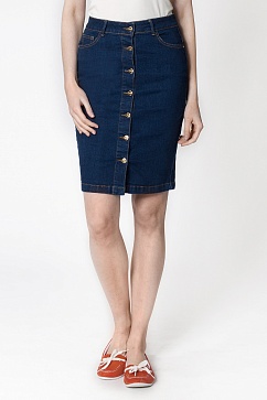 Юбка-карандаш, зауженная книзу выполнена из очень эластичного денима. С застежкой на петли и пуговицы спереди. Карманы классические джинсовые.