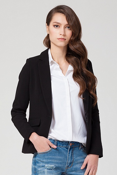 Классичекий приталенный жакет на 1 пуговице с карманами, на подкладке из вискозы.