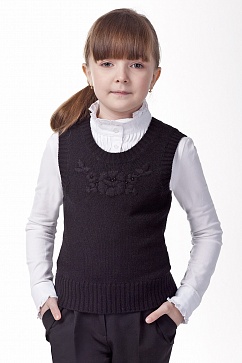 Вязаный жилет из мягкой пряжи. Спереди вышивка, декорированная бисером.
