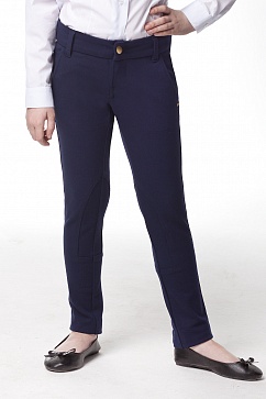Узкие брюки из плотного трикотажа. Спереди застежка на металлическую кнопку, на карманах металлические заклепки.