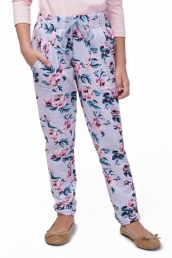 Мягкие брюки в пижамном стиле из принтованного футера с отворотами по низу. Ширина пояса регулируется декоративным шнурком.