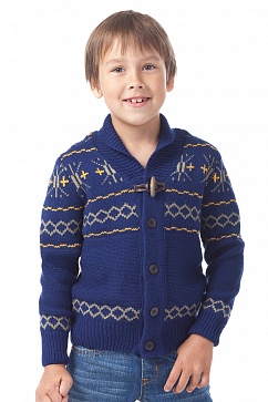 Жакет для малчика жаккардовой вязки с крупными пуговицами.