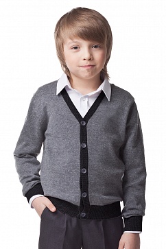 Вязаный жакет из мягкой пряжи. Планка, низ изделия и манжеты рукавов выполнены из меланжевой пряжи.