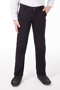 Брюки из плотной хлопковой ткани с эффектом стирки. Подкладка из трикотажа. Застежка на металлическую пуговицу. Сзади прорезные карманы с листочкой. Регулируемый пояс.