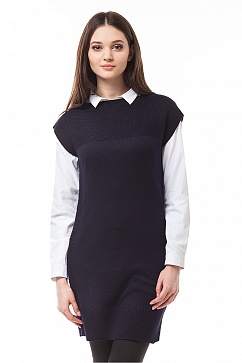 Платье-жилет свободного силуэта без рукавов. Выполнено вязкой среднего размера из пряжи с эффектом меланж Вырез лодочкой. Структурность изделию придают связаная изнаночными петлями кокетка. Бока и низ изделия связанны резинкой.