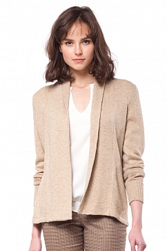 Шерстяной жакет полуприлегающего силуэта без застёжки, имеет отложной воротник и широкие манжеты вывязанные "резинкой"