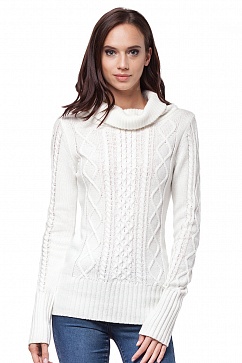 Удлиненный свитер прямого силуэта с крупной узорной вязкой. По низу свитера и рукавов эластичная вязка резинкой.