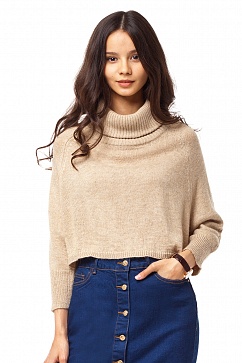 Ультра-модный ассиметричный джемпер мелкой вязки с объёмной горловиной и рукавом реглан. Выполнен из пряжи с высоким содержанием шерсти, деталь переда укорочена, по бокам небольшие декоративные разрезы,на плечах и рукавах декоративная вывязанная "коса".
