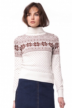 Свитер из мягкой и теплой хлопковой пряжи с добавлением акрила, который обеспечивает яркость красок, вязка средней плотности. Верхнюю часть свитера украшает контрастная вязка снежинки.