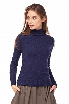 Свитер узорной вязки из теплой и пушистой пряжи. Ворот-стойка, манжеты, и низ свитера связаны резинкой.