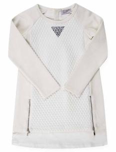 Сзади на спинке нашивная молния в цвет. На груди нашивка(шеврон) треугольник из основной ткани с камнями и стразами разного размера. Длина платья до середины бедра." молочный