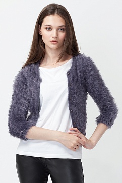 Жакет на пуговицах выполнен из пряжи с эффектом меха. Очень мягкий и пластичный, отлично тянется.