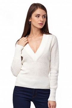 Джемпер связан из теплой, мягкой пряжи с добавлением мохера. Глубокий V-образной вырез горловины и манжеты связаны резинкой.