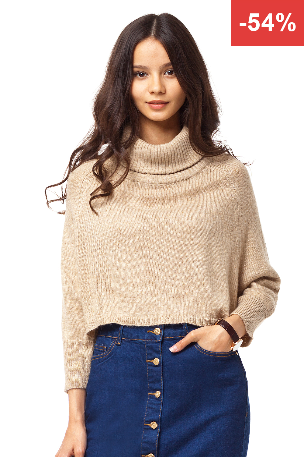 Ультра-модный ассиметричный джемпер мелкой вязки с объёмной горловиной и рукавом реглан. Выполнен из пряжи с высоким содержанием шерсти, деталь переда укорочена, по бокам небольшие декоративные разрезы,на плечах и рукавах декоративная вывязанная "коса".