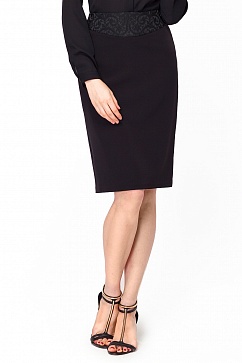 Юбка-карандаш из плотной классической ткани на подкладке. Сзади застежка на молнию. Пояс оформлен в виде кокетки из декоративной жаккардовой ткани