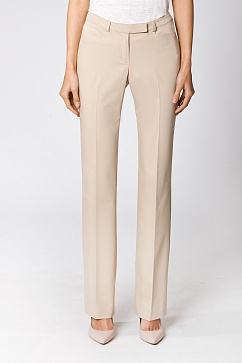 Брюки изготовлены из ткани из смешанных волокон - вискоза, для комфорта и полиэстер для уменьшения сминаемости, полиуретан для эластичности - свобода движения. Классическая форма прямых брюк - довольно плотно прилегающих к фигуре сверху, и прямых от колена. Стрелки на штанинах , карманы фигурные спереди, сзади карманы-обманки с листочками.