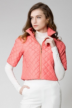 Куртка выполнена из плотной плащевки, выполненной из нитей двух оттенков для придания фактурного матового мерцания, легкого эффекта "хамелеон". Простегана с утеплителем двойной строчкой ромбами . Куртка на подкладке. Спереди застежка на золотистую молнию, которая продолжается на воротнике-стойке. Особенностью данного изделия является - короткие рукава - выше локтя и широкой стойкой воротника. Новая форма - трендовый силуэт.