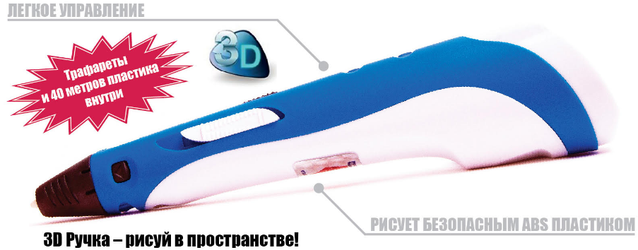 Отличный комплект для тех, кто только осваивает 3Динг (Тридинг). Ручка рисует практичным и безопасным ABS пластиком.