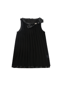 " JD172-J Платье верх 100% полиестер, подклад 95% хлопок 5% полиэстра Платье черного цвета, плисерованное. Горловина и пройма модели декорированны искуственной тканью с глянцевым напылением. Из аналогичной ткани выполнен декоратвный бант. Черный