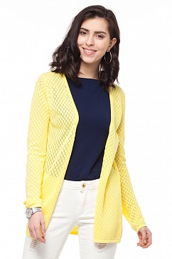 Жакет свободного силуэта выполнен из мягкой хлопковой пряжи - ажурная вязка ромбами. Удлиненный хлопковый жакет главный тренд летнего гардероба.