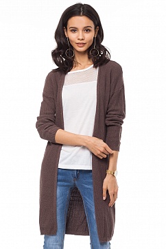 Удлиненный хлопковый кардиган незаменимая вещь для создания расслабленного летнего образа. Планка без застежки. Кардиган со спущенным плечом из легкой хлопковой пряжи связан шашечной фактурой.