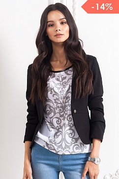 Жакет приталенного силуэта из плотного трикотажного полотна. Остроугольные лацканы и планка на одной пуговице, шлица по низу локтевого шва с тремя отделочными пуговицами. Изделие отрезное по линии талии, в шве два горизонтальных кармана. Подкладка- поливискоза стрейтч не стесняет движений и поддерживает эластичность трикотажа жакета.