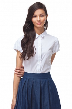 Блузка-боди - идеальный вариант для тех, кто ценит комфорт удобство. Классический приталенный силуэт, застежка на планку на пуговицах. Нижняя часть боди изготовлена из эластичного хлопкового полотна, с ластовицей на кнопах. Двуслойный рукав фонарик имеет эффектную обработку низа благодаря второму слою рукава.